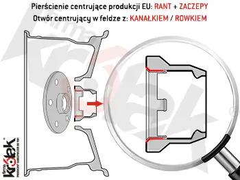 Natomiast w sytuacji odwrotnej, gdzie w otworze felgi mamy stopniowanie, kanałek / rowek fajnie byłoby aby zamontować pierścienie z zaczepami, ale prawie równie dobrym rozwiązaniem, będzie zamontowanie pierścieni gładkich bez zaczepów, i pod względem technicznym będzie prawidłowo.