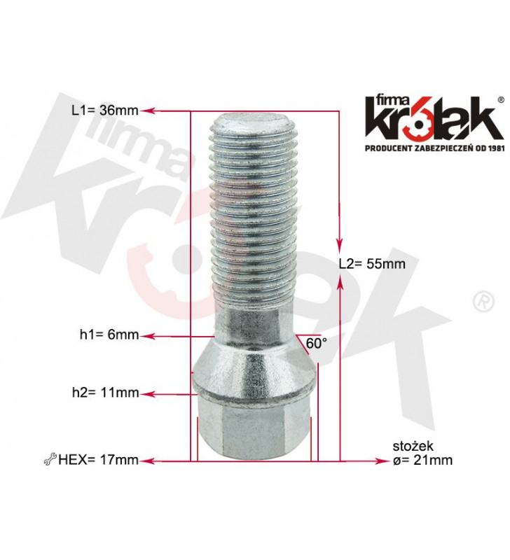 Długość robocza gwintu: 36mm